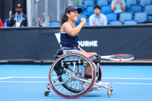 「それこそ、一歩も動かなくてもラケットに当たるように。でも、ネットの反対側にいる車いすの人たちは自由にコートを動き回り、力強いショットを放っていた。そうか、車いすに乗れば、同じようにテニスができるのか、と気づいて、それからは車いすを使うようになりました」